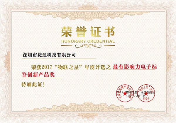 2017"物聯(lián)之星"最有影響力電子標(biāo)簽創(chuàng)新產(chǎn)品獎