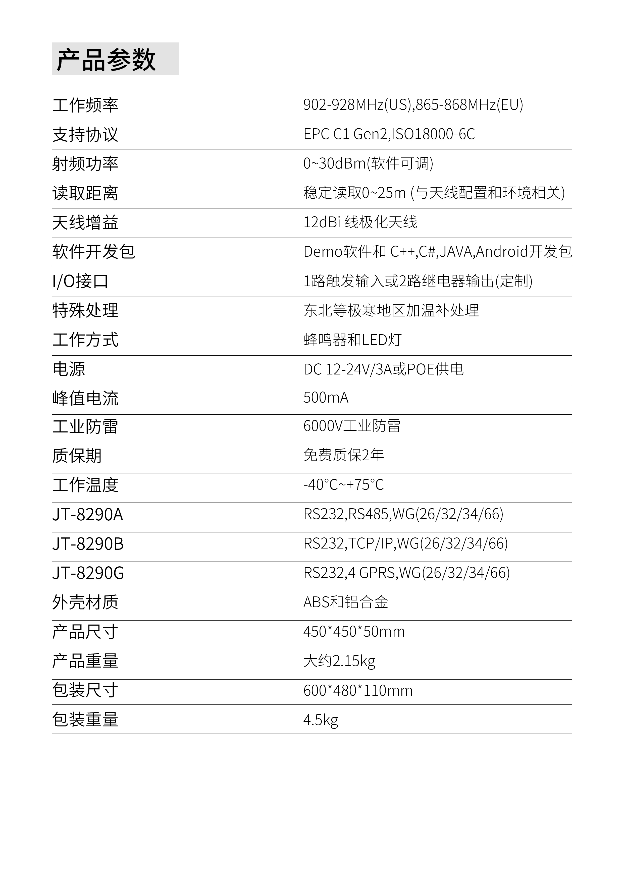 遠距離讀寫器JT-8290A