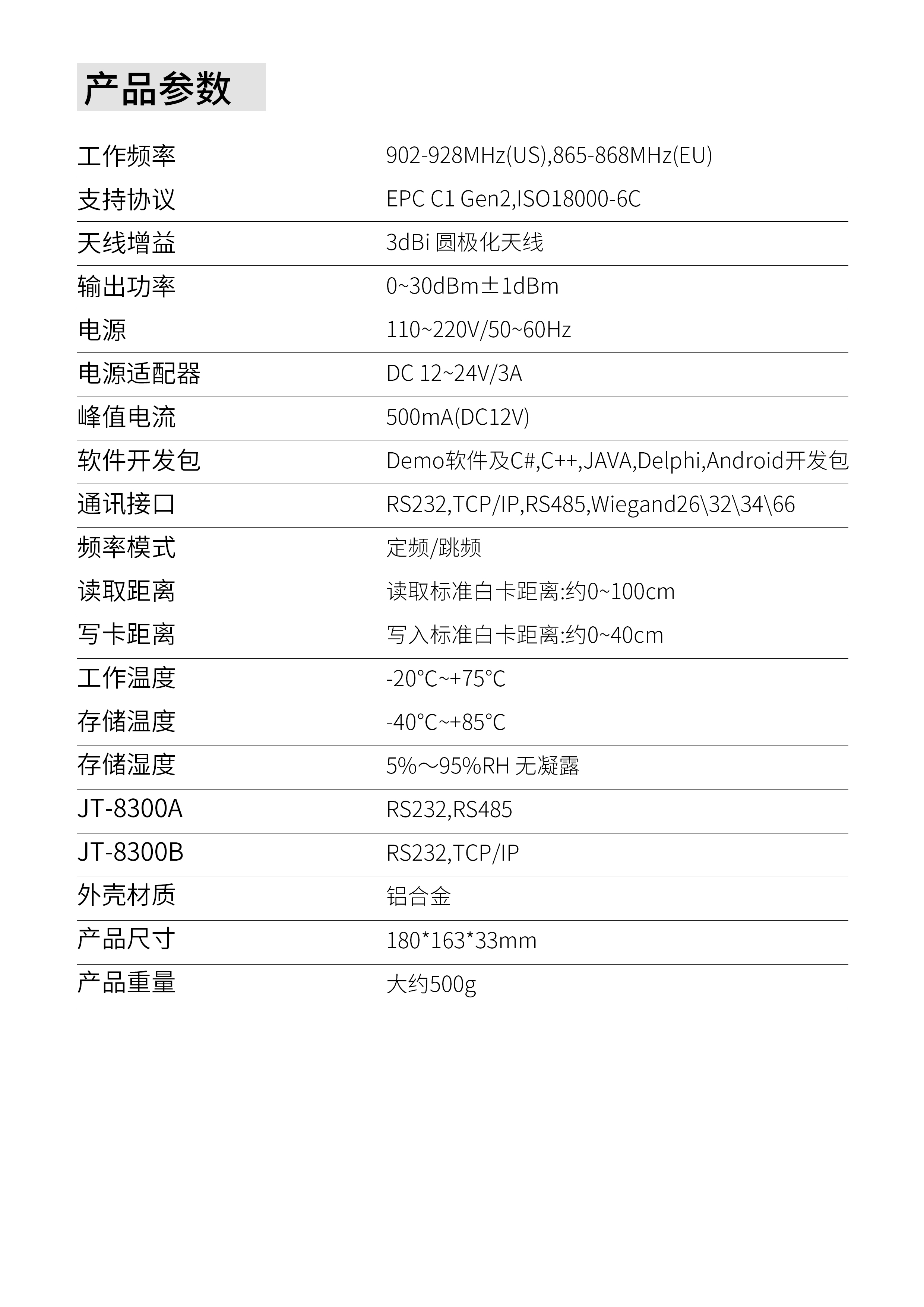 全面支持符合ISO-18000-6C(EPC G2)協(xié)議 |